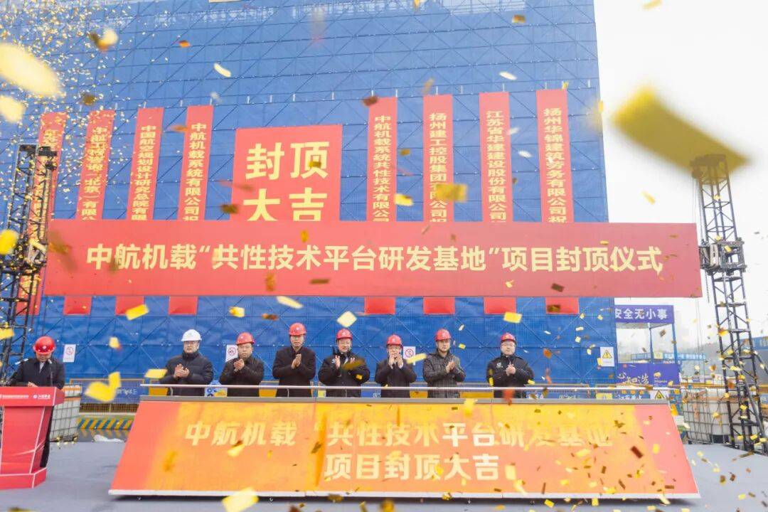 1月19日,省级重大项目机载共性技术平台研发基地项目主体结构顺利封顶,标志着项目建设迈入全新阶段。扬州市、区相关领导,机载共性相关负责人及职工代表,各参建单位代表共同见证。该项目是扬州航空产业“十五五”首个标志性成果,从开工到主体封顶仅耗时200天,尽显“扬州效率”与“机载速度”。该基地是推动共性技术自主创新的战略平台,建成后将成为航空领域创新高地,为我国航空科技自立自强和地方经济高质量发展注入强劲动能。活动上,建设单位为设计、施工、全咨单位授旗,与会领导共同启动封顶装置。