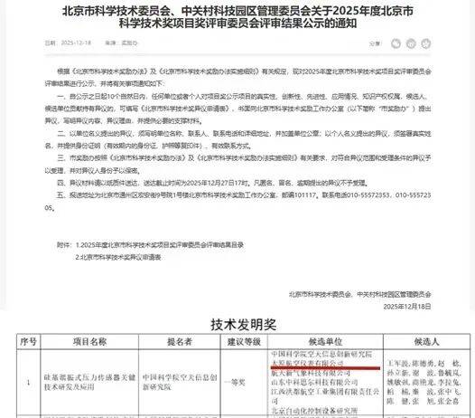 近日,太航携手中国科学院空天信息创新研究院联合攻关的“硅基谐振式压力传感器关键技术研发及应用”项目,荣获2025年度北京市科学技术奖技术发明类一等奖。该项目历经十余年协同攻关,突破了敏感元件设计、MEMS批量化加工、圆片级封装等关键技术,研制出国内首款完全自主知识产权的高精度硅谐振压力传感器,并建成了国内首条RPS系列传感器批量化生产线。产品已在航空、航天、高端装备、气象探测等领域规模化应用,全温区综合精度优于0.02%FS,核心指标超越国外同类产品,整体性能达到世界先进水平,填补了国内高端压力传感器技术空白,打破了长期进口依赖局面,推动了我国高端压力传感器产业从“跟跑”到“并跑”的历史性跨越。